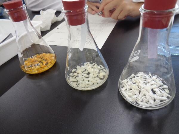 品質管理流通科3年生は食品サイエンス実習で身近な加工食品に含まれる漂白剤について学びました。