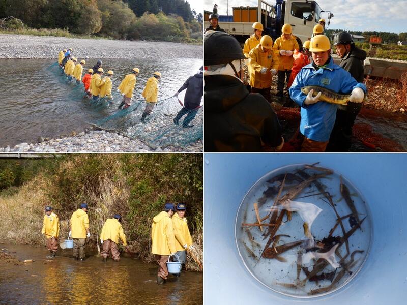 作業としては、取り上げたサクラマスを撲殺し、雌親は腹を割いて卵を採り出し、雄親は腹を押して精子を絞り出します。