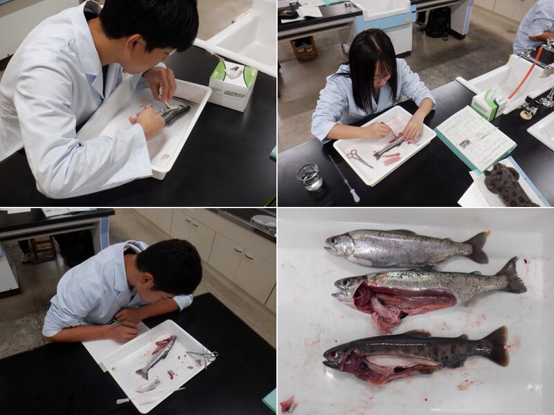 本校で飼育しているサクラマスを対象に魚体の解剖を行い、内臓などの観察・スケッチを通し、魚類の内部形態について学習を行いました。。