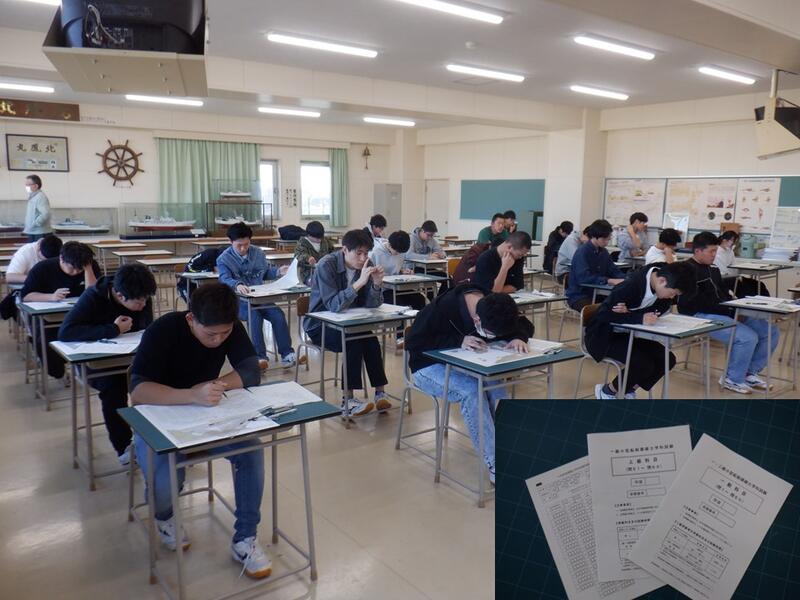海洋技術科3年生では、「小型船舶」で国家資格である1級小型船舶操縦士の取得に向けた授業をおこなっています。