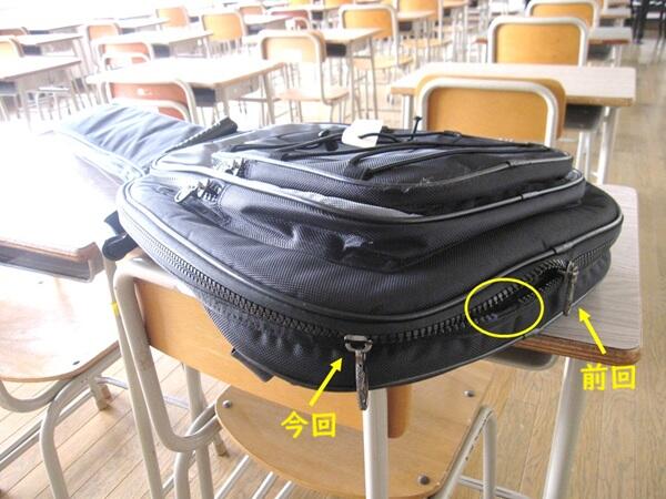 無理矢理開けようとしてしまったのか、はたまた経年劣化なのか、これまで複線のジップレールを走っていたチャックが、孤独に単線を走る事態に…。「開いた口が塞がらない(ケースが閉まらない)」、正にそんな状況。