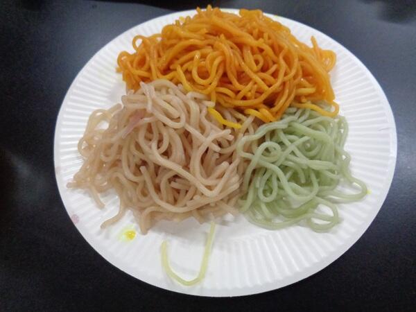 品質管理流通科2年生は食品サイエンス実習で中華麺と紫キャベツ色素を使い