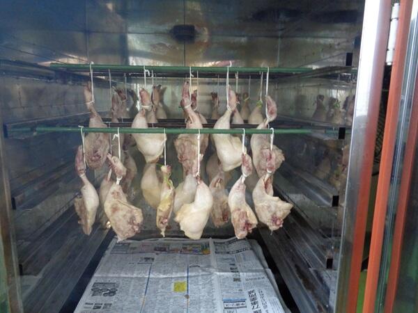 品質管理流通科3年生は総合実習で先週ソミュール液に漬けて一定期間おいたチキンレッグを