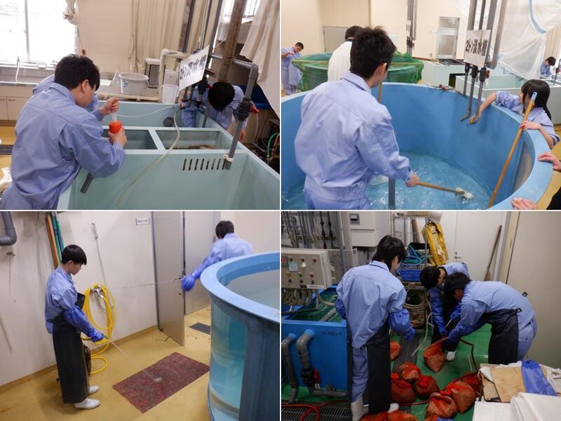 本日(2/26)は飼育実習(水槽、濾過槽掃除)を行いました。