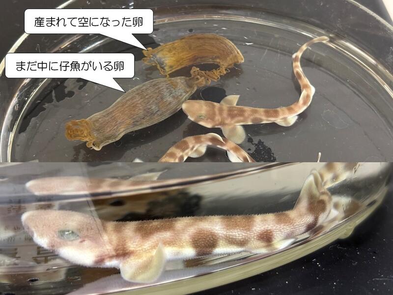 今現在2個体がふ化していますが、他の卵を見ると中にまだトラザメ赤ちゃんの姿がみえるものもありますので、まだ何匹か産まれてきてくれることかと思います。