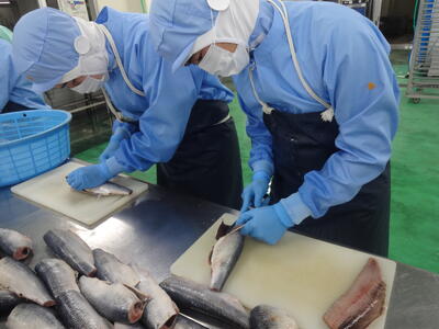 M2実習:ニシン二枚おろし実習! 投稿日時 : 11/18 水産食品科 M2実習:ニシン二枚おろし実習を行いました! ニシンオイル缶詰の製造に向けた下処理になります。 ニシンの卵巣である「数の子」を傷つけないように丁寧な作業をしました。 Tweet {{options.likeCount}} {{options.likeCount}}