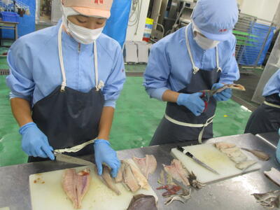 M3実習:カレイ5枚卸し! 投稿日時 : 10/08 水産食品科 M3実習:カレイ5枚卸しを実施しました。 カレイは、マガレイを使用し、5枚おろしのやり方をレクチャーしました。 5枚卸しは難易度が比較的高い作業になりますが、うまい生徒では身が残らないように薄く捌けていました! この技術を生かして、ヒラメやカレイの5枚おろしにどんどんチャレンジしてみてください! Tweet {{options.likeCount}} {{options.likeCount}}
