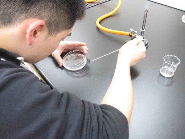 無菌操作③(M3) 投稿日時 : 11/13 水産食品科 食品管理A、科目内実習の一コマ。今回は無菌操作の第3回目として、画線操作を行いました。白金耳を片手に、釣菌したサンプルを寒天培地へ塗りつけます。力が強すぎると培地に傷がつき割れてしまうため、細心の注意を払って作業を行いました。 s Tweet {{options.likeCount}} {{options.likeCount}}