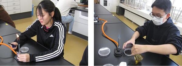 無菌操作①(M3) 投稿日時 : 10/28 水産食品科 水産食品科3年生、食品管理Aの科目内実習。過日は化学実験器具の使用について学びましたが、本日より無菌操作について学びます。本実験では各個人で寒天培地を分注し、無菌的な操作ができているかを次回以降に確認します。 空気の流動を極力抑え、雑菌が舞い上がらないようにすることを第一に、ガスバーナー円周の上昇気流効果を利用して空中落下細菌が混入(コンタミネーション)しないよう、細心の注意を払いつつ作業を行いました。上手くいけば、無菌状態の綺麗な寒天培地ができあがる予定です。次回は確認しつつ、できあがった培地を使っての続き実験となります。 s Tweet {{options.likeCount}} {{options.likeCount}}