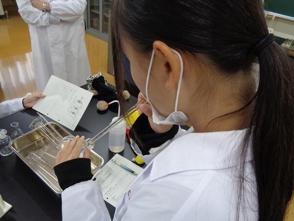 器具の使い方を学ぶ 投稿日時 : 10/15 品質管理流通科 品質管理流通科2年生は総合実習で微生物実験に使う器具類の扱い方を学びました。 10MLのメスピペットから始まり3ML・1MLと量の少ないものになるにつれ その扱いが難しくなり失敗者が続出していました。 メスピペットで試料を吸うとき誤飲を防ぐため青梅綿(おうめわた)を適量詰めますが その量が少なかったり使い終わってもなかなか取り出せなかったりと大苦戦でした。 ちなみに青梅綿は小袖などの着物に詰められていて 昔は寒くなると中に綿を足したり春になると綿を抜いたりしていたそうで 名字で四月一日と書いて「わたぬき」と読むのはここから来ているようです。 Tweet {{options.likeCount}} {{options.likeCount}}