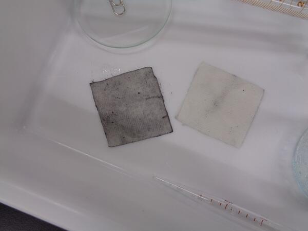 今回は実際にごま油と毛糸や綿の布を使い浸透・分散・乳化を体験しました。