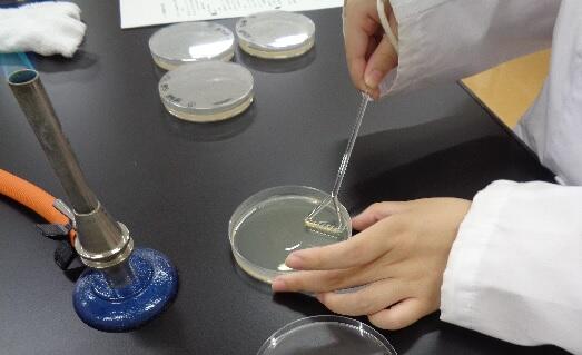 品質管理流通科3年生は応用微生物の実習で殺菌効果があるといわれて販売されている