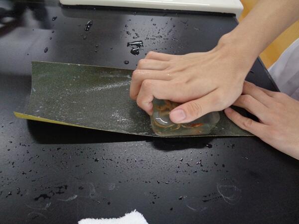 カニの樹脂標本の仕上げ② 投稿日時 : 7:35 品質管理流通科 品質管理流通科1年生は水産海洋基礎実習にて 前回作業の続きでカニの樹脂標本の表面を磨き完成させました。 この作業は集中力と忍耐が必要となりますが できあがりを楽しみに耐水サンドペーパーの目が粗い120番から始まり 240番・400番・600番・1200番を経てようやく仕上げの2000番にたどり着き 最後にプラスチックポリッシャーでピカピカに磨き上げました。 ちなみにこの授業を休んだり作業が遅いと 後日放課後の居残り補習で完成させるまで作業は続きます。 Tweet {{options.likeCount}} {{options.likeCount}}