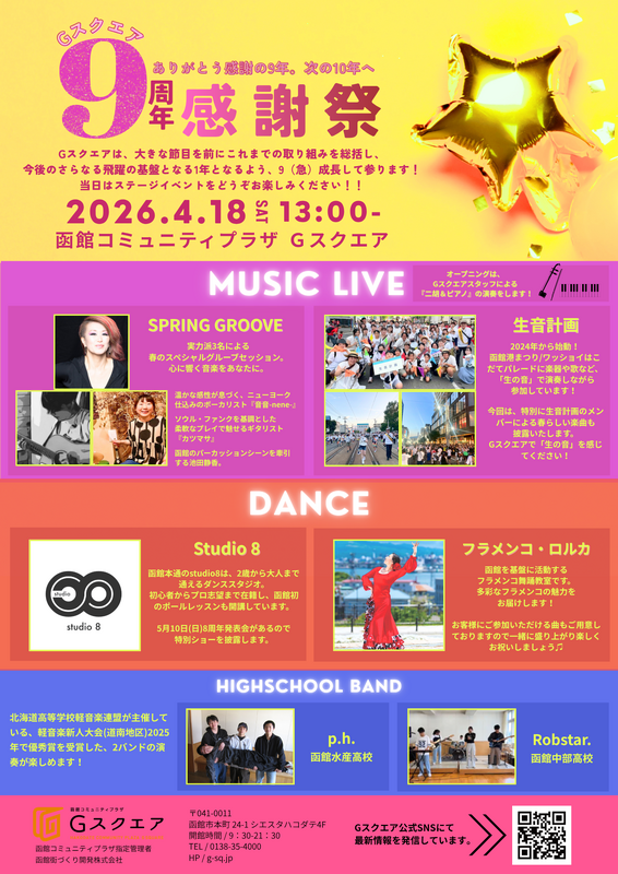 来月4月18日(土)のGスクエア9周年イベントの告知フライヤーが完成しました。