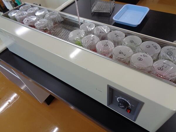 品質管理流通科3年生は総合実習で乳酸菌の検査のため培地作成準備を行いました。